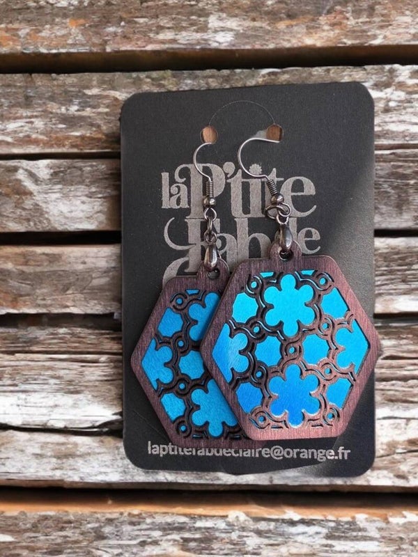 Boucles d’oreilles artisanales en bois et aluminium, alliant nature et modernité. Chaque paire est réalisée avec une découpe laser de précision pour un rendu fin, léger et élégant. Leur conception garantit un confort optimal grâce à leur faible poids.