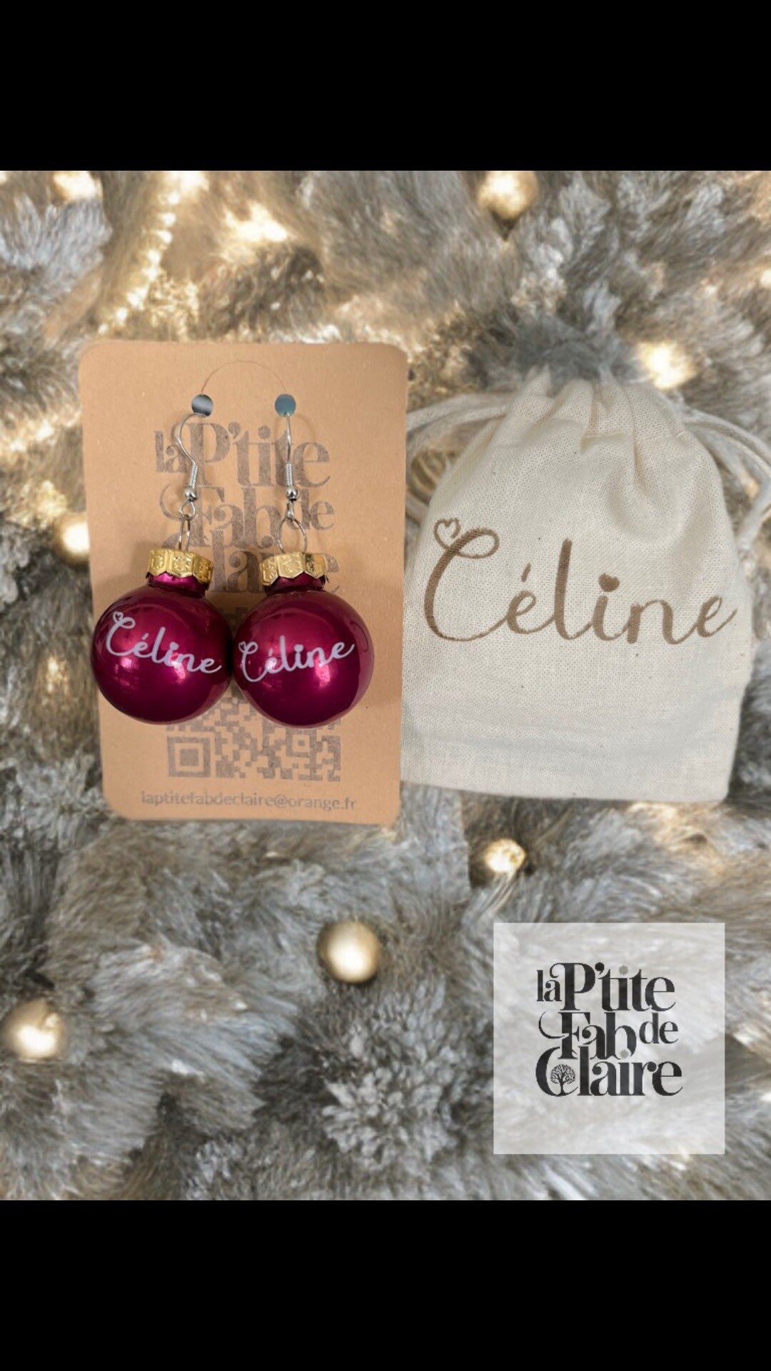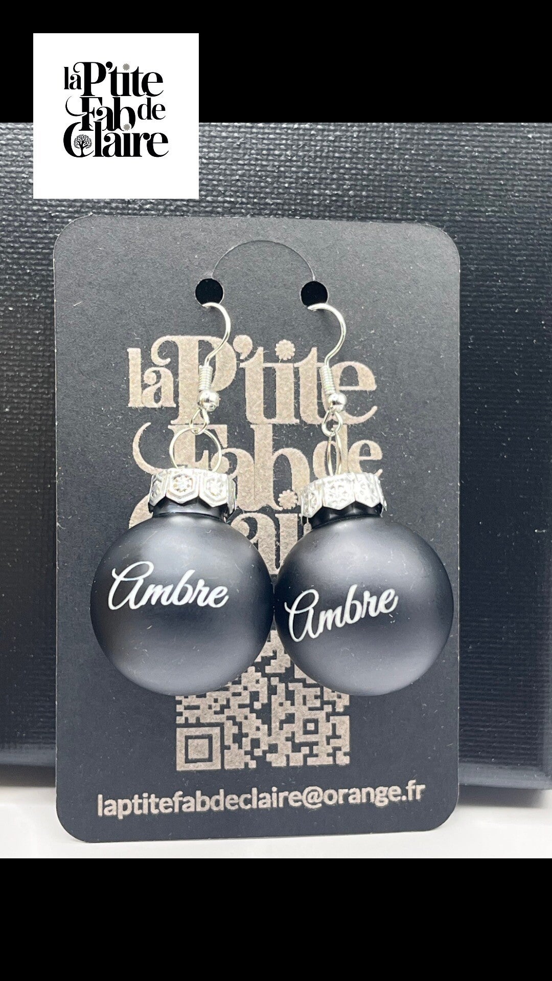 Boucles d’oreilles boule de Noël personnalisées – Prénom gravé sur verre