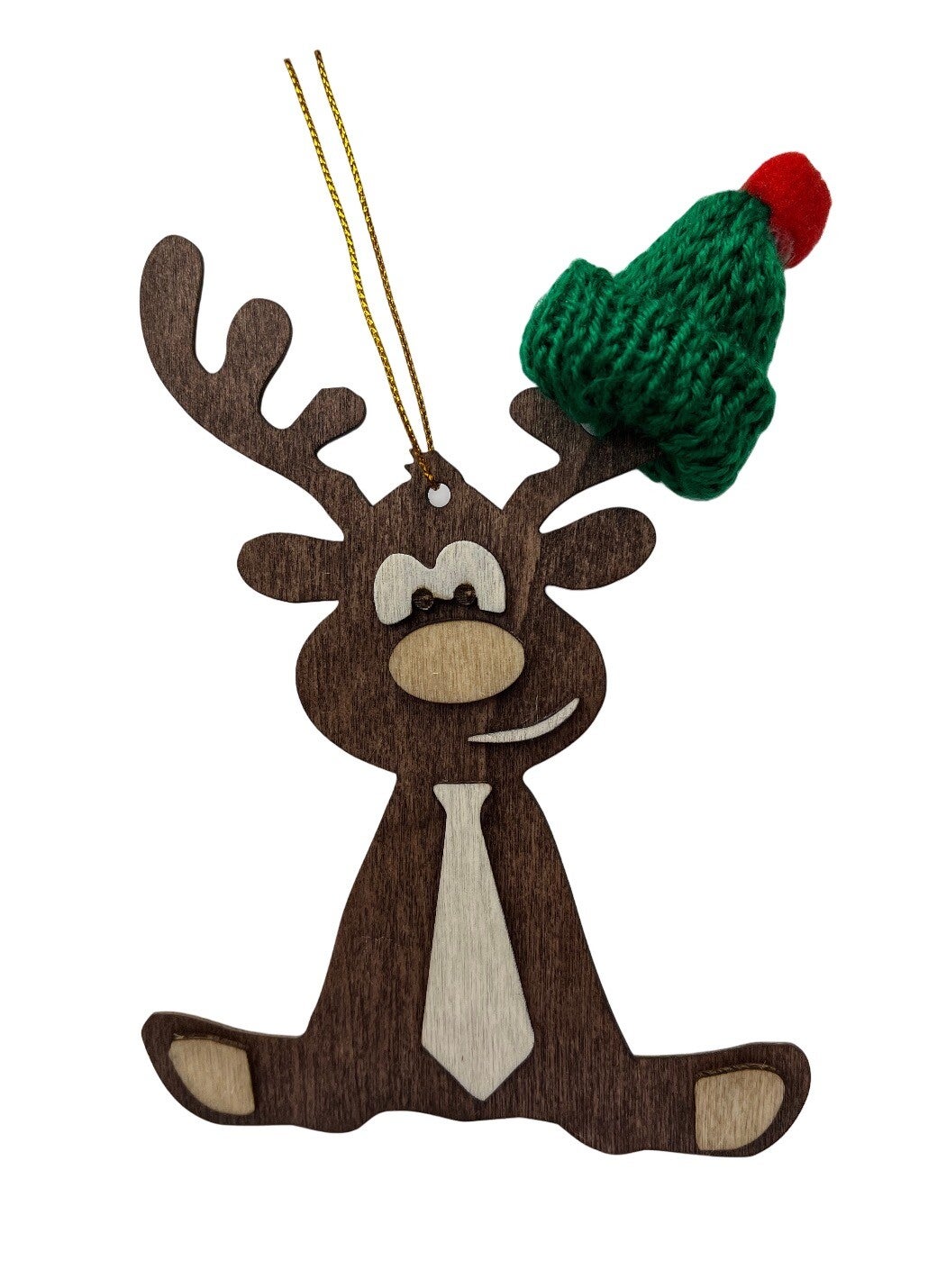 Suspension Renne Bonnet option personnalisée – Prénom gravé – Déco de Noël unique