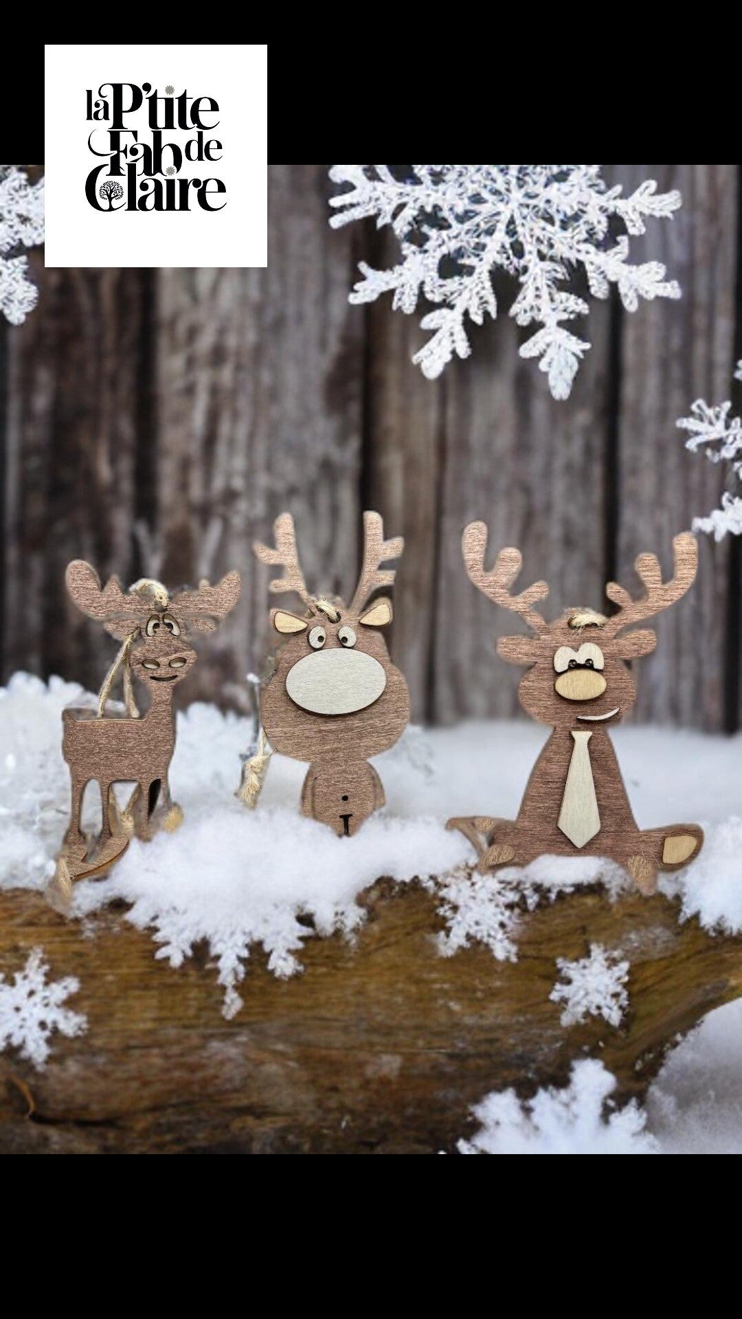 Lot de 3 décorations Noël en bois – Modèles de rennes au choix – Déco de Noël artisanale