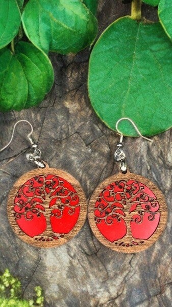 Boucles d’oreilles Arbre de Vie fait main bois