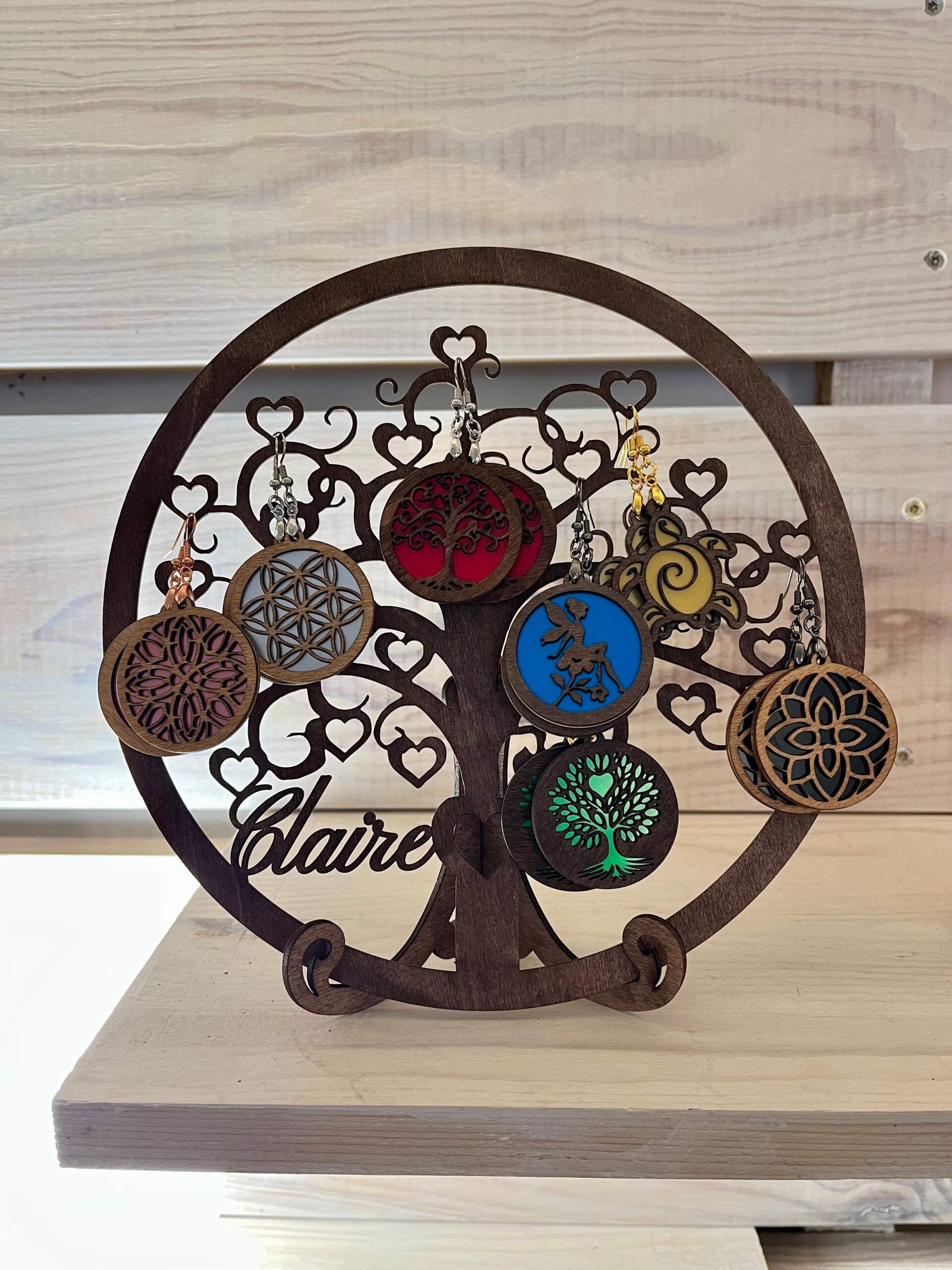 Mettez en valeur vos boucles d’oreilles avec ce support à poser en bois, élégant et personnalisable.