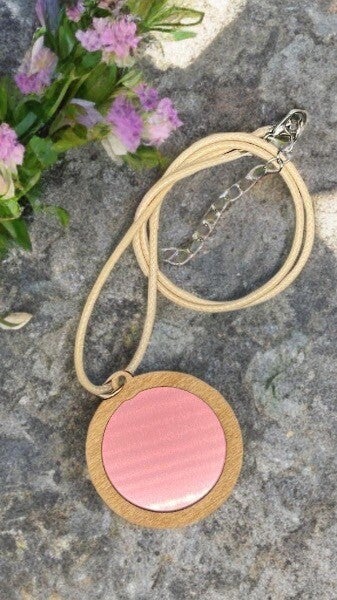 Collier Mandala artisanal en bois découpé au laser et acier inoxydable hypoallergénique. Léger et élégant, personnalisable (+1€) avec prénom ou mot symbolique.
